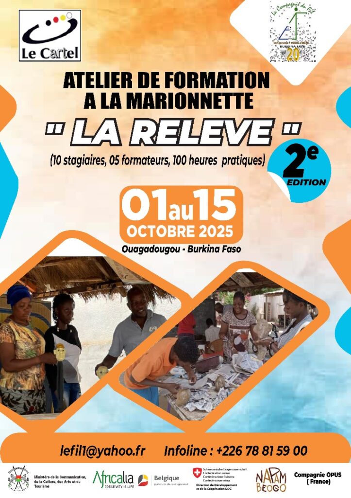 La Compagnie du Fil, basée au Burkina Faso, est spécialisée dans les arts de la marionnette, le théâtre d’objets et les formes animées. Elle œuvre à la formation, à la création et à la diffusion de spectacles, avec une forte dimension sociale et culturelle. Son projet phare, Filigrane, propose une école africaine de la marionnette articulée autour de résidences de formation-création et de diffusion. Deux initiatives spécifiques enrichissent ce programme : Écrire pour la marionnette, axée sur la dramaturgie, et Marionnettes au féminin, qui valorise la participation des femmes. En parallèle, La Relève, lancée en 2024, vise à professionnaliser une nouvelle génération de marionnettistes. La compagnie collabore avec des structures locales et internationales, affirmant son rôle moteur dans le développement de cet art en Afrique.