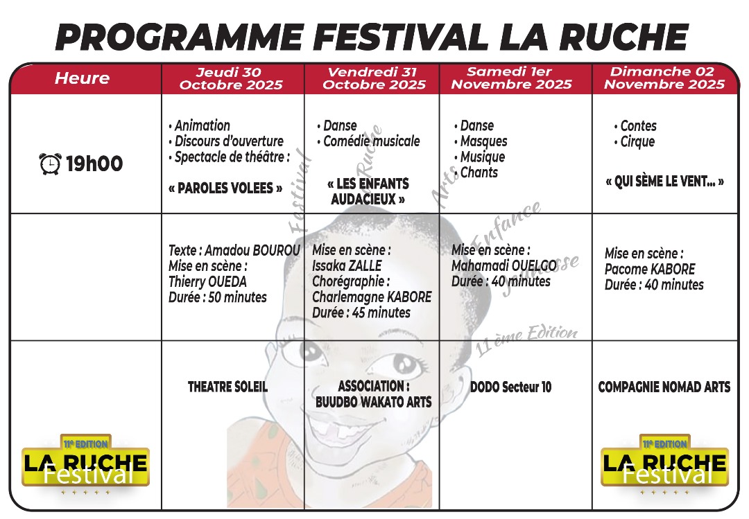 La compagnie théâtre Éclair a été créée en 1994 avec pour objectifs, la formation, la création et la diffusion de spectacles pluridisciplinaires au Burkina Faso, tout comme à l’international. Dès sa création le théâtre Éclair s’est positionné comme structure travaillant pour l’enfance et la jeunesse.